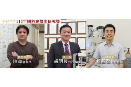 環工系盧明俊特聘教授、材料系賴盈至特聘教授、食生系陳曄副教授榮獲國科會傑出研究獎